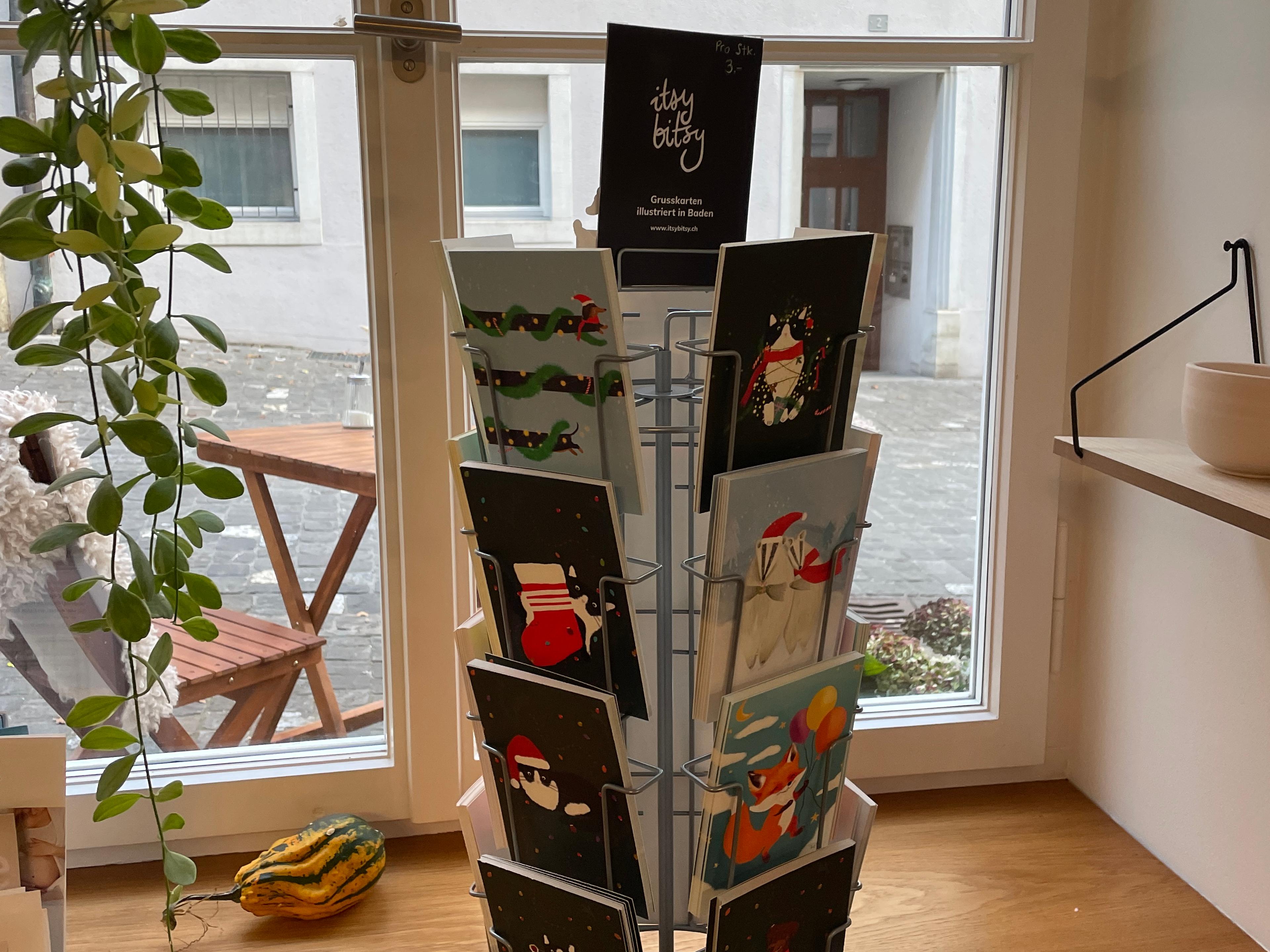 Ich freue mich sehr, euch mitteilen zu können, dass die itsybitsy-Grusskarten nun auch im wunderschönen Kaffi Florence in der Altstadt von Baden erhältlich sind! Als erste Verkaufsstelle mit eigenem Kartenständer bietet das Kaffi Florence die grösste Auswahl an unseren aktuellen Postkarten. Besucht diesen gemütlichen Laden, geniesst einen köstlichen Kaffee oder ein leckeres Bananenbrot und stöbert durch die Weihnachtskarten und unsere anderen Designs. Der Kartenständer befindet sich direkt am Ein- und Ausgang, so dass ihr ihn auf keinen Fall verpasst. Saisonal wird der Ständer mit neuen Motiven sowie unseren Bestsellern gefüllt – perfekt für Weihnachtsgeschenke oder einen besonderen Gruss an eure Liebsten. Schaut vorbei und entdeckt die neuesten Postkartenmotive von itsybitsy!